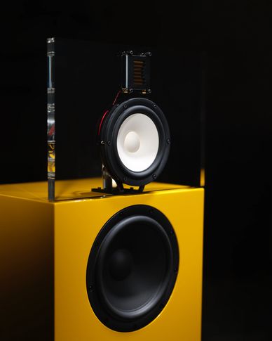 The speaker is available in any color in a matte or high-gloss finish or in veneer upon request.
